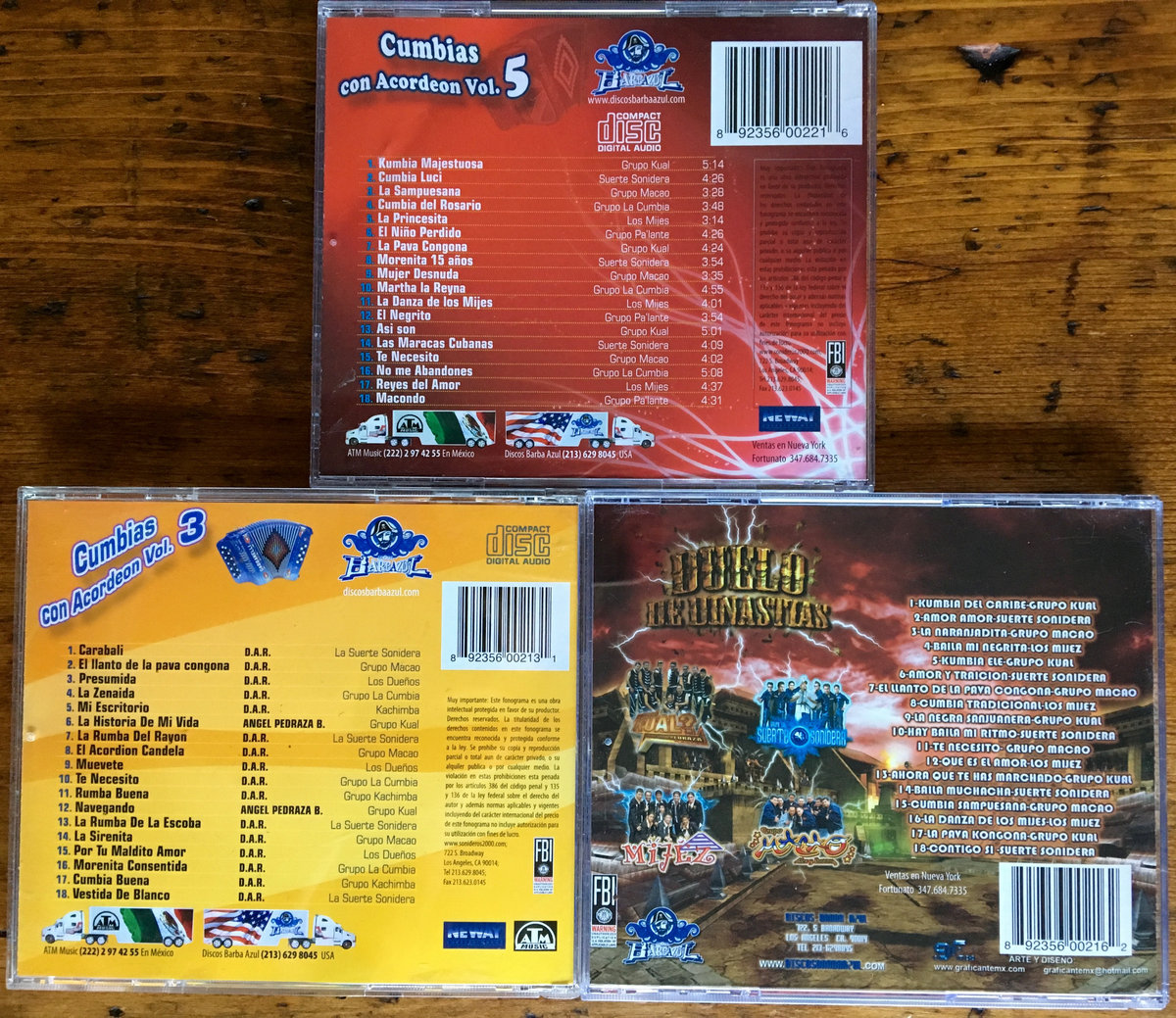 Package of three Discos Barba Azul CDs--Duelo de Dinastias, Cumbias Con Acordeon Vol 3 & 5. Limited to 5 only!